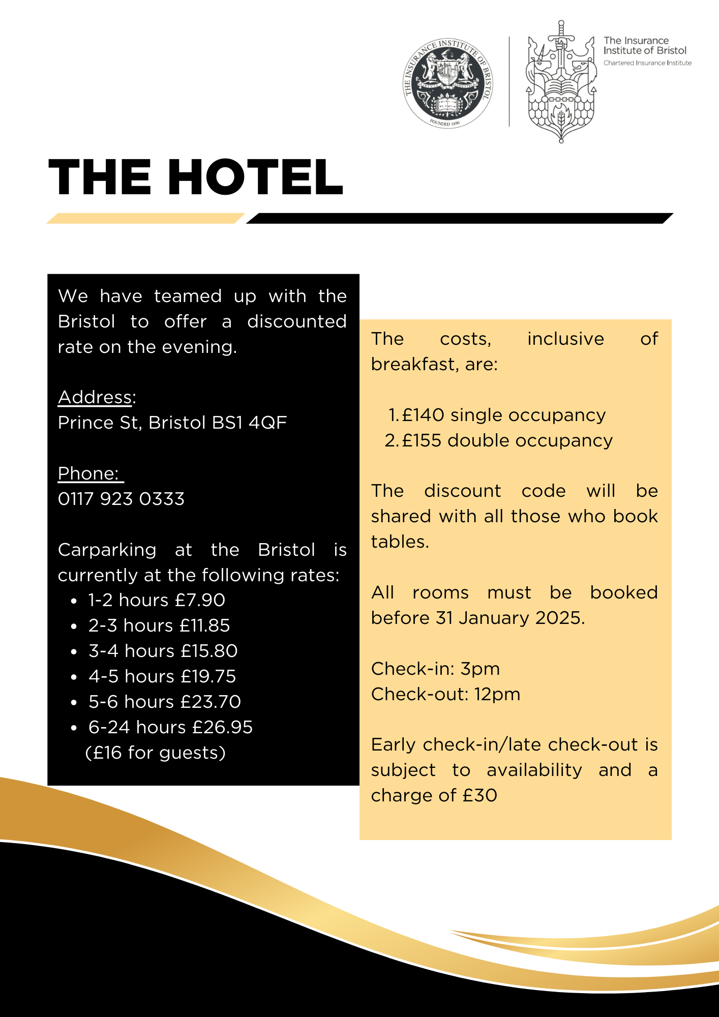 - Rooms are available for those attending the event at the Bristol Hotel where there is discounted parking