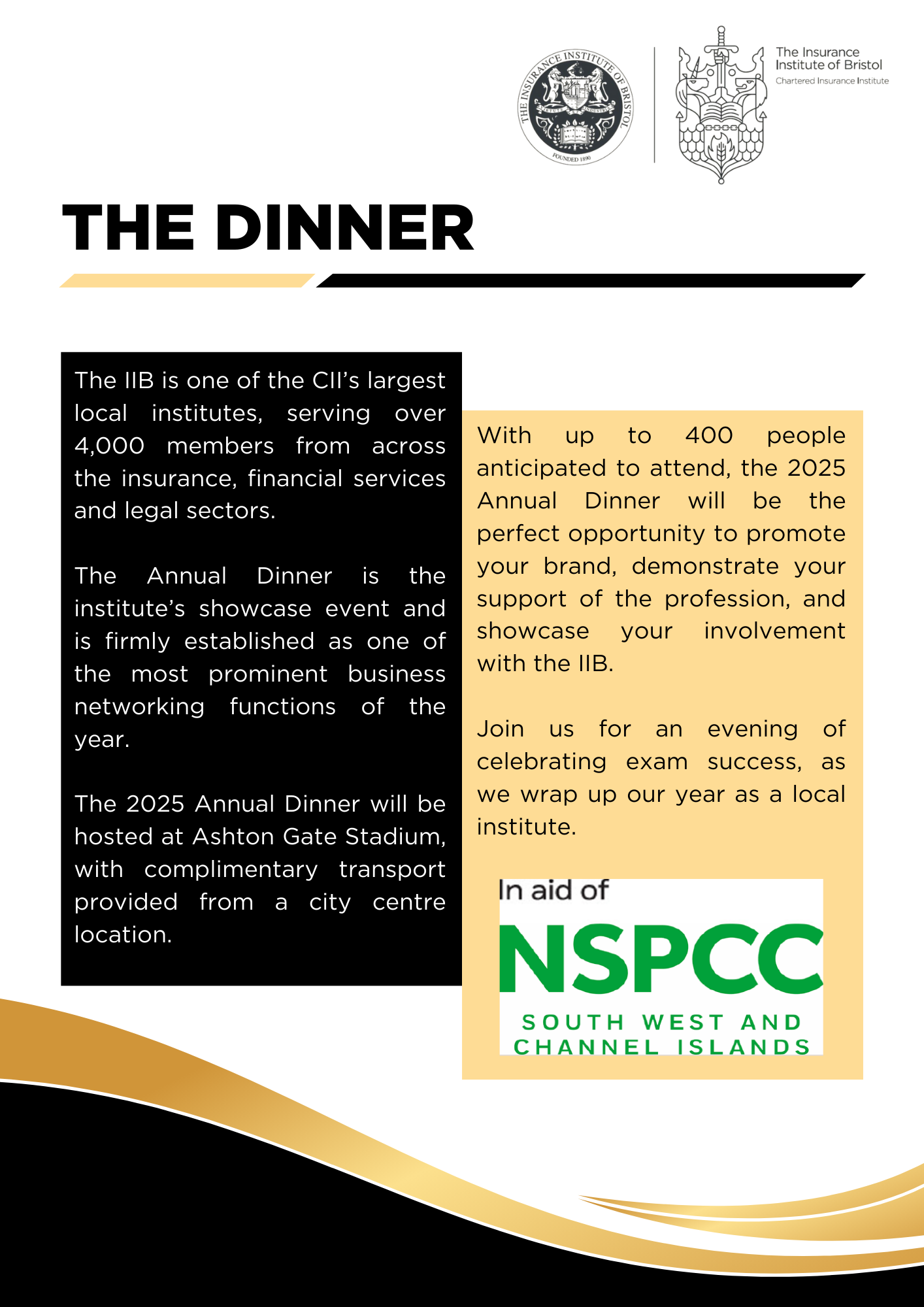 This year, we will be hosting the event in the Lansdown Suite at Ashton Gate Stadium. This year’s President, Nigel Taylor, together with the IIB Council, look forward to welcoming you there.