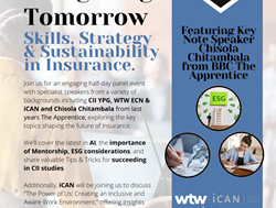 Join us for an engaging half-day panel event exploring the key topics shaping the future of insurance. We'll cover the latest in AI, the importance of Mentorship, ESG considerations, and share valuable Tips & Tricks for succeeding in CII studies. Additionally, iCAN will be joining us to discuss "The Power of Us: Creating an Inclusive and Aware Work Environment," offering insights on fostering diversity and inclusion within the industry. Below is an overview of the topics that will be explored: The Latest in AI: As AI becomes an integral part of everyday life, often behind the scenes, it's essential for members of all ages to understand its benefits and challenges. This session will explore the pros and cons of AI. Also covering important topics like deepfakes, cybersecurity implications, identity verification, and the environmental impact of AI The Importance of Mentorship: Understand the vital role mentorship plays in professional development within the insurance sector. Gain insights into how mentorship can foster talent, support career growth, and build a stronger, more connected industry community. ESG Considerations: Explore the growing significance of Environmental, Social, and Governance factors in insurance decision-making. Learn how companies are integrating ESG principles into their strategies to promote sustainability, social responsibility, and ethical governance. Tips & Tricks for Succeeding in CII Studies: Receive practical advice and proven strategies to excel in your CII studies. Whether you're just starting or looking to enhance your knowledge, these tips will help you navigate your professional development journey effectively. The Power of Us: Creating an Inclusive and Aware Work Environment," iCAN (Insurance Cultural Awareness Network) are proud to present an inspiring key note and panel event exploring how cultural competency, values, and authentic inclusion can transform workplaces. Following a keynote from Apprentice candidate Chisola Chitambala around Leadership and Cultural Awareness, the panel will bring together leaders and professionals from across the industry to share personal experiences and practical insights on creating environments where everyone feels respected, valued, and empowered to succeed. Through discussion on topics such as adapting communication styles, building relationships across diverse backgrounds, and embedding core ethical values, our speakers will highlight how awareness and empathy can break down barriers and strengthen our industry. Networking Opportunity: After the talks, there will be a chance to connect with fellow attendees, speakers, and industry leaders. This is a great opportunity to share ideas, ask questions, and build meaningful professional relationships. Don’t miss this opportunity to gain valuable insights, practical advice, and inspiration to navigate and influence the future of insurance.