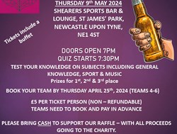 Newcastle CII Annual Charity Quiz Night Thursday 9th May, Doors open 7pm for a 7.30 start Shearer's Sports Bar and Lounge, St. James' Park, NE1 4ST Book your team by 25th April (Teams of 4 - 6) £5 per person