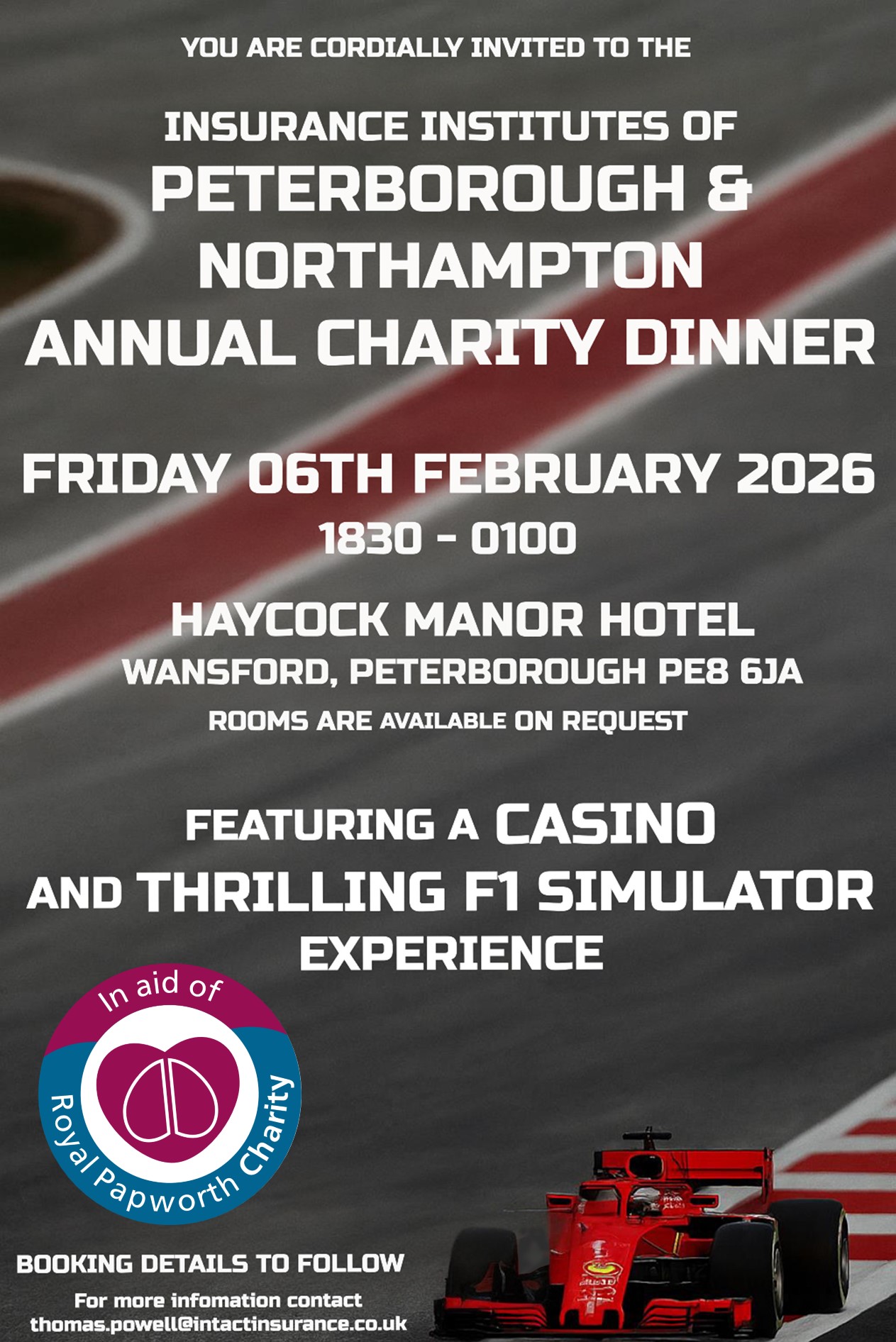 We are delighted to formally invite you to the 93rd Insurance Institute of Peterborough Annual Dinner on Friday 6th February 2026 at The Haycock Manor Hotel, Wansford, Peterborough PE8 6JA.